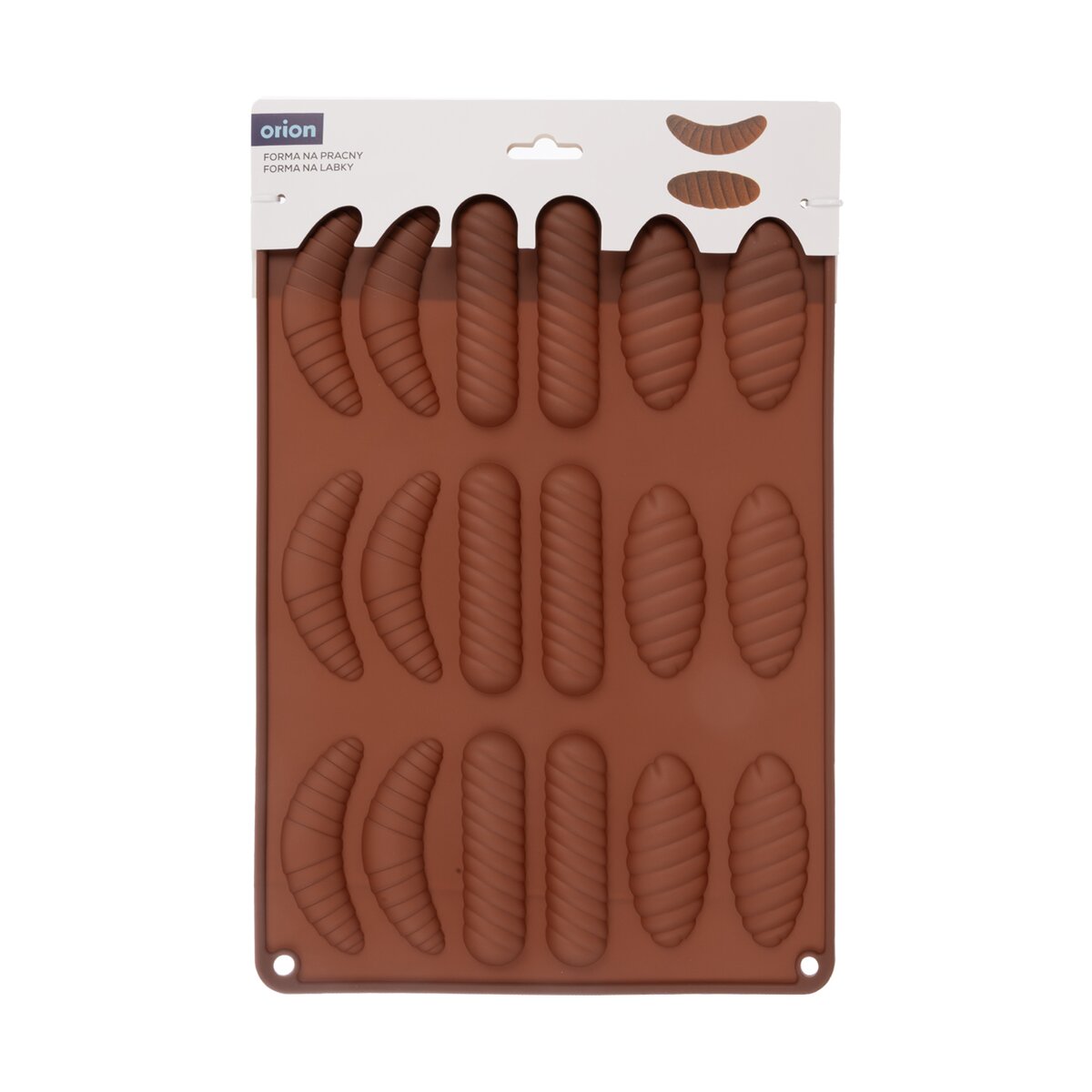 Kód produktu 154434Nepřilnavá hnědá silikonová forma umožní naráz upéct 18 ks praciček tří různých tvarů. Poradí si i s čokoládovými pralinkami, petitkami ke kávě a marcipánovými ozdobami.