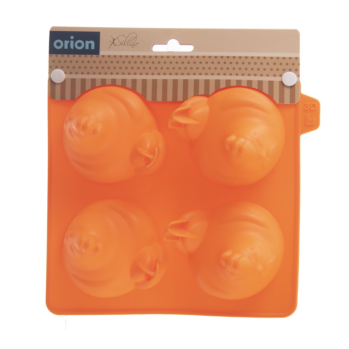 Kód produktu 151783Nepřilnavá silikonová forma v oranžové barvě umožní upéct 4 kusy slepiček z oblíbeného těsta najednou.