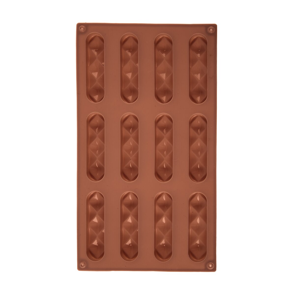 Kód produktu 154445Nepřilnavá hnědá silikonová forma pro rychlé a stejnoměrné pečení 12 ks tyčinek. Jedna formička má rozměr 8,2x2,1 cm.