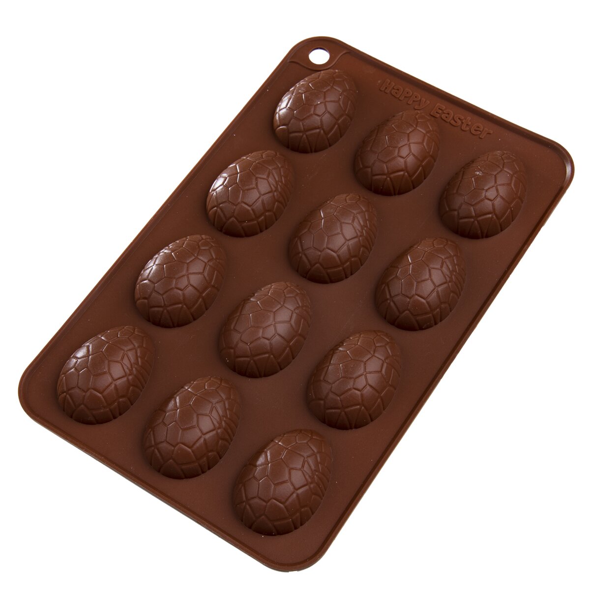 Kód produktu 151765Nepřilnavá velikonoční hnědá silikonová forma pro rychlé a stejnoměrné pečení 12 ks sušenek ve tvaru vajíčka nebo k výrobě originálních pralinek.