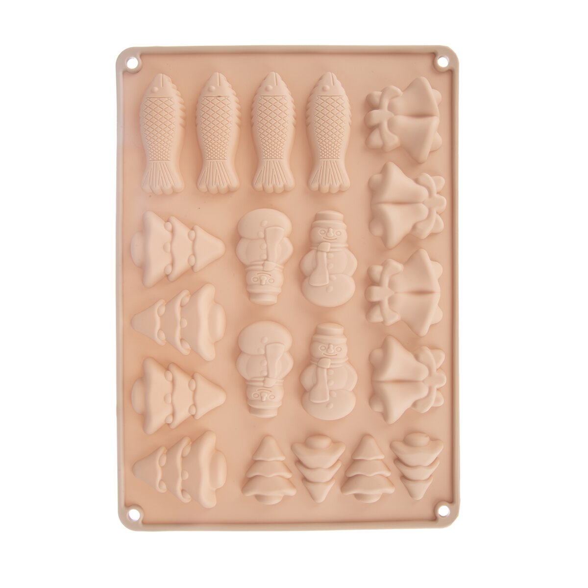 Kód produktu 154435Nepřilnavá béžová silikonová forma umožní naráz upéct 20 ks pracinek ve tvaru sněhuláků, zvonků, ryb či stromků.