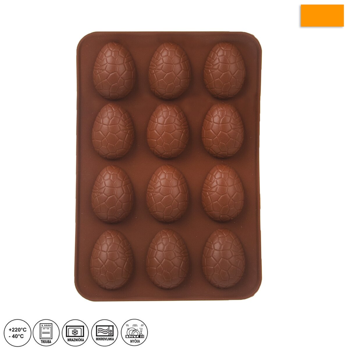 Kód produktu 124991Nepřilnavá velikonoční silikonová forma pro rychlé a stejnoměrné pečení 12 ks sušenek ve tvaru vajíčka nebo k výrobě originálních pralinek.