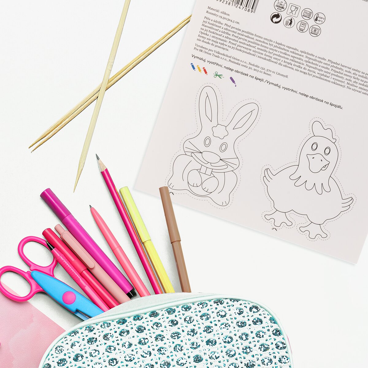 Orion tip: na zadní straně papírové karty, na které je forma připevněna, jsou pro děti připraveny obrázky zvířátek, které si mohou dle vlastní fantazie vybarvit, vystřihnout, nalepit na špejli a hrát s nimi divadlo. Vhodné pro děti od 3 let.