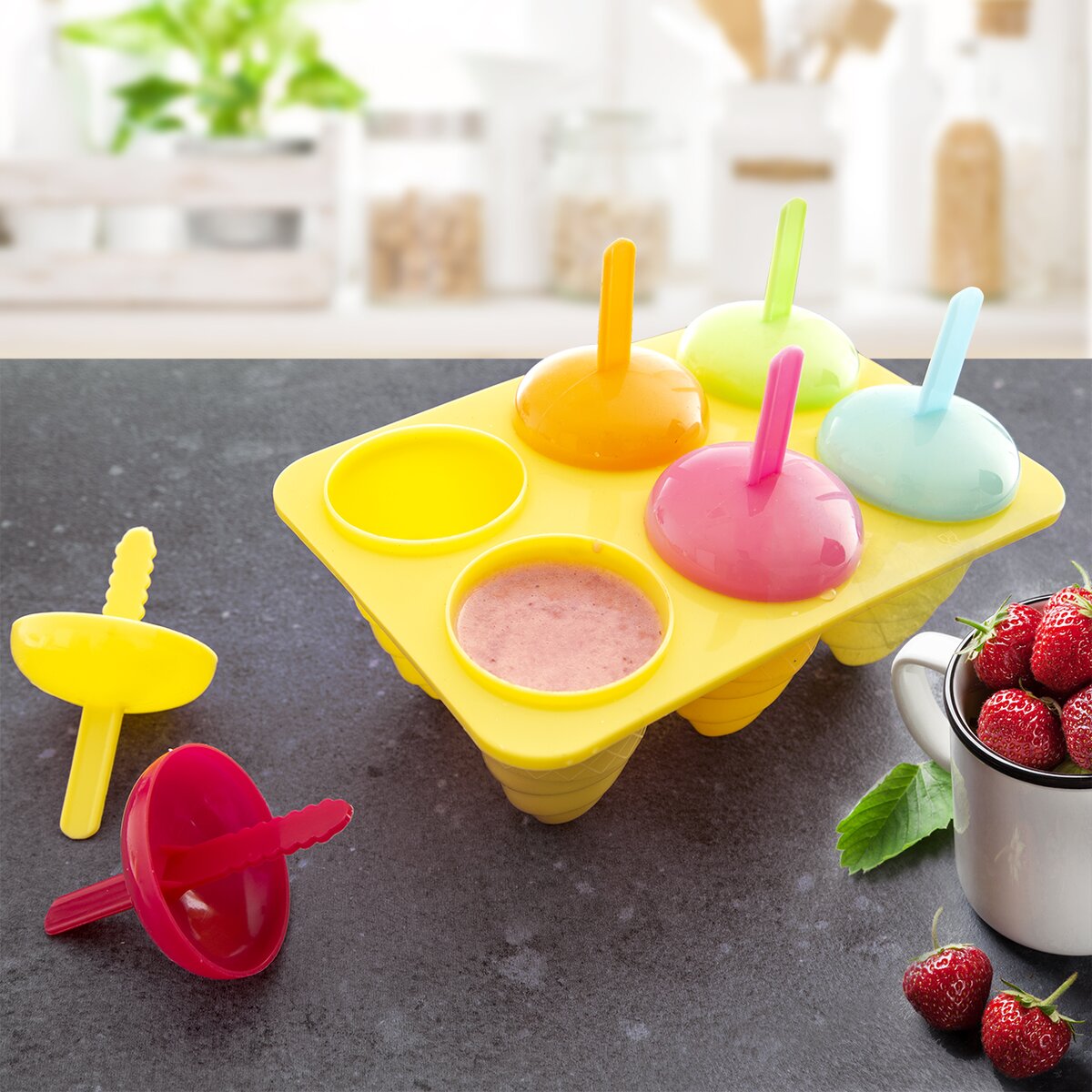 Kód produktu 123219Forma na přípravu domácích nanuků a zmrzliny se šesti tvořítky s barevnými držadly, která zamezí stékání zmrzliny po rukou.