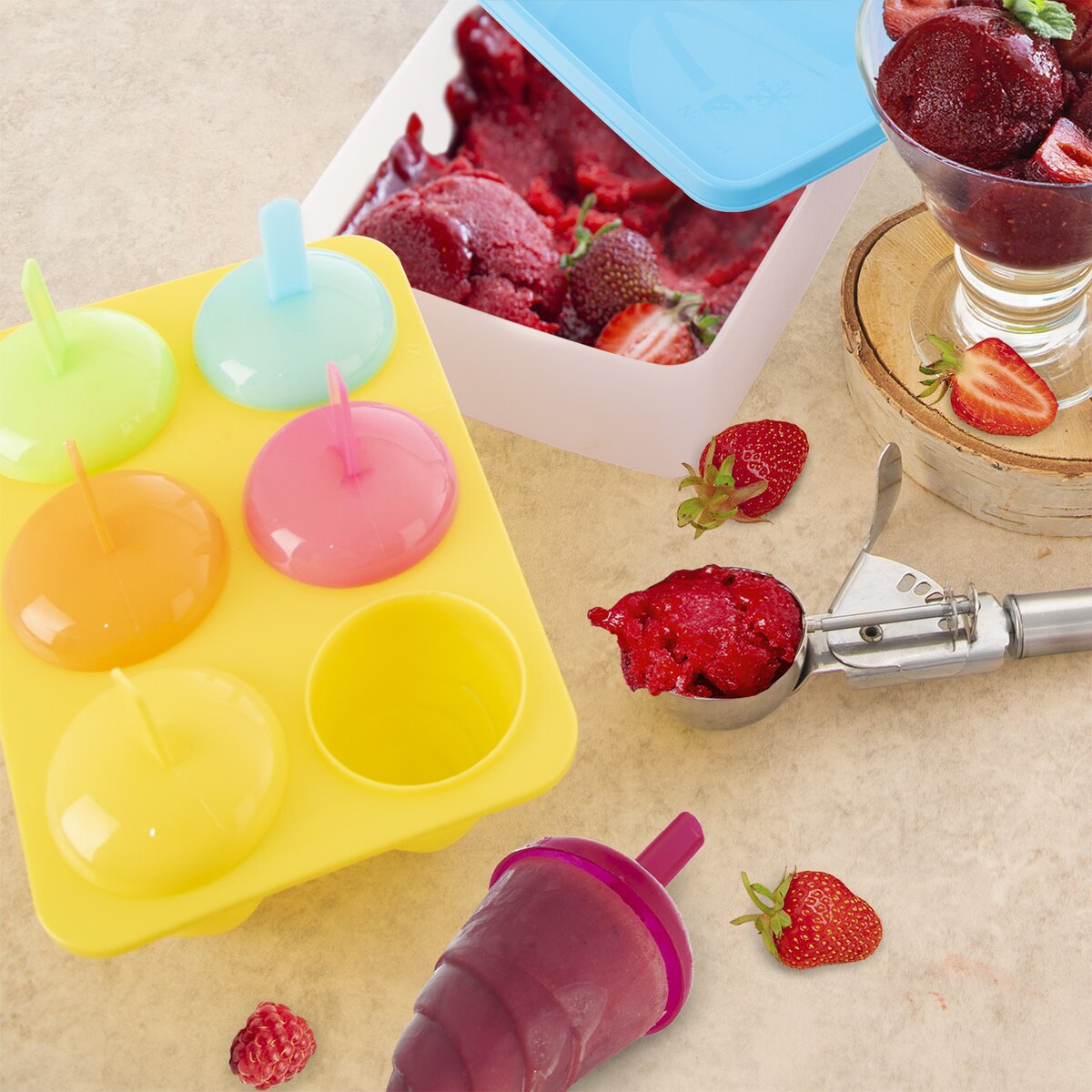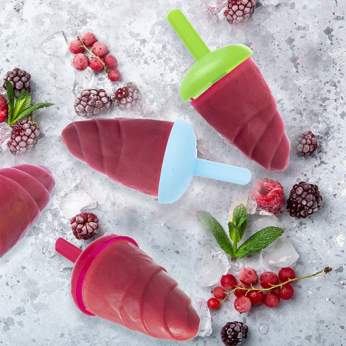 Ať už milujete rozmixované ovoce, zmražené domácí ovocné šťávy nebo experimentujete s vícebarevnými smetanovými či tvarohovými nanuky, stačí směs nalít do formy, vložit víčko s hrotem a nechat zmrazit.