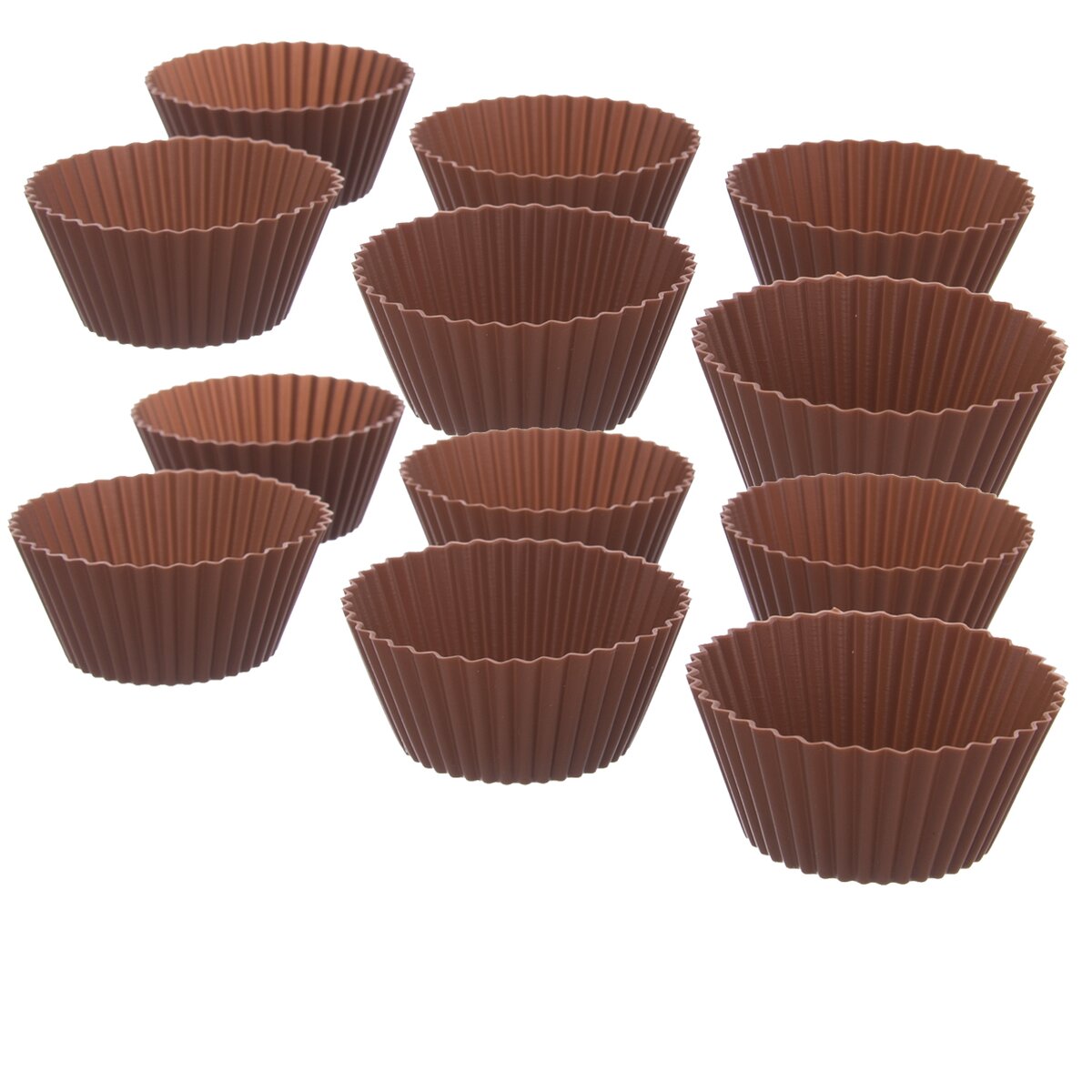 Díky kvalitním hnědým silikonovým formám bude pečení snadnější. Lze je použít i na přípravu ovocných košíčků, suflé nebo osvěžujícího sorbetu. Formy jsou vyrobené z odolného, žáruvzdorného silikonu, určeného pro styk s potravinami. Průměr dna košíčků je 3,7 cm.
