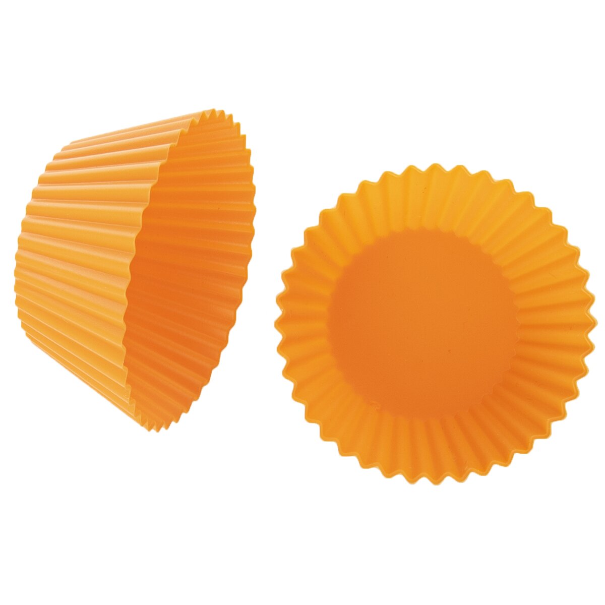 Díky kvalitním a praktickým oranžovým silikonovým formám bude pečení snadnější. Lze je použít i na přípravu ovocných košíčků, suflé nebo osvěžujícího sorbetu. Formy jsou vyrobené z odolného, žáruvzdorného silikonu, určeného pro styk s potravinami. Průměr dna košíčků je 4,5 cm.