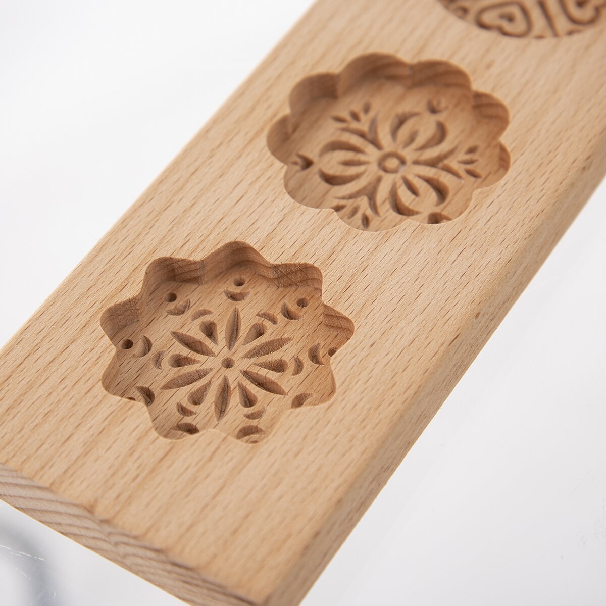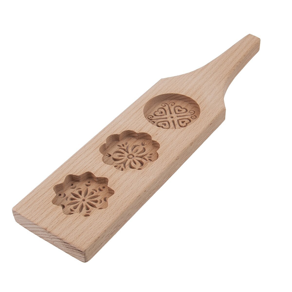 Kód produktu 127411Forma z bukového dřeva na výrobu vytlačovaných sušenek, cukroví a perníčků kulatého a květinového tvaru, ale i k dekoraci.