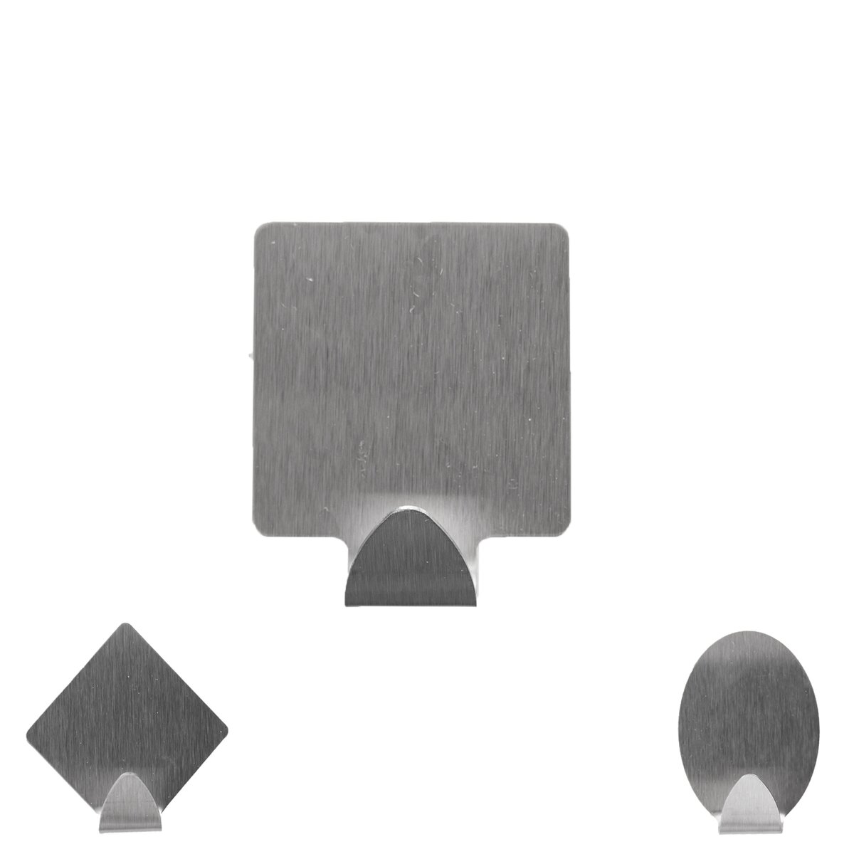 Kód produktu 834719Sada dvou kusů nalepovacích nerezových háčků o rozměrech 3,5×3×5 cm.