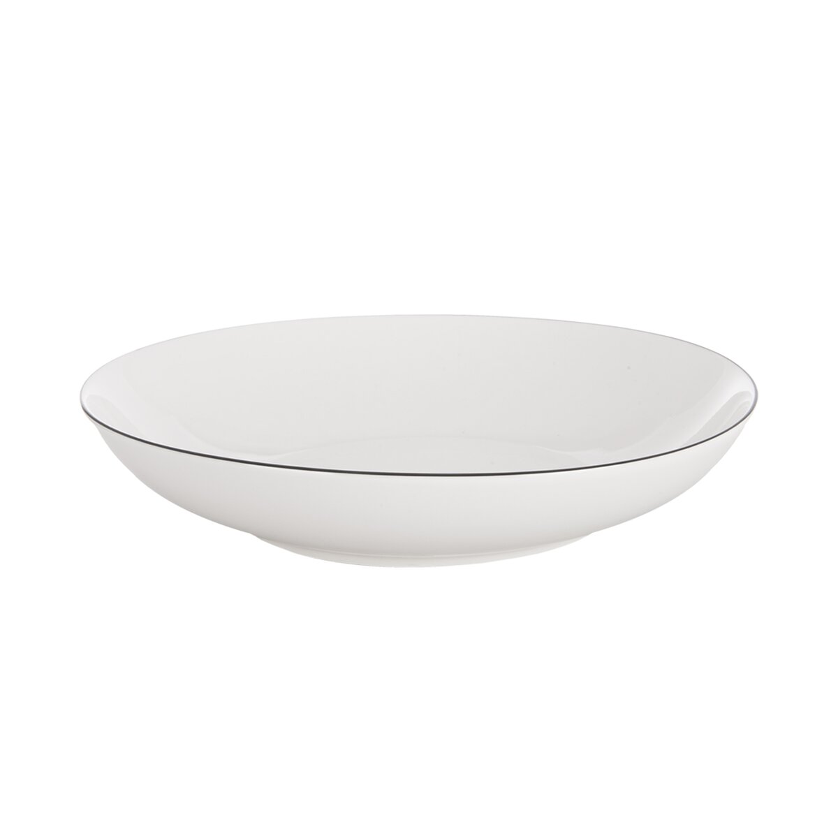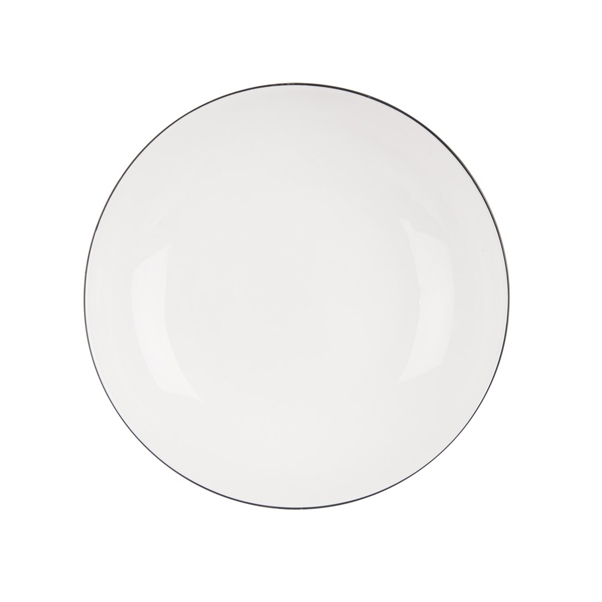 Kód produktu 129172Elegantní hluboký talíř má hladký bílý povrch a je zdoben jemnou černou linkou po okraji, která podtrhuje jeho vytříbený vzhled. Je tenkostěnný, ale přesto díky použitému typu porcelánu pevný a odolný.