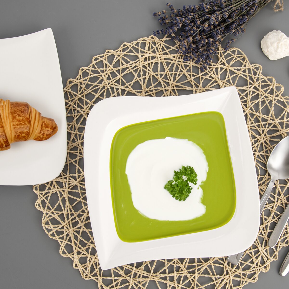 Na bílém porcelánovém talíři si vychutnáte polévku, těstoviny i omáčku. Lze jej použít i na terase při servírování salátů, čerstvého ovoce nebo pečiva ke grilovaným dobrotám.