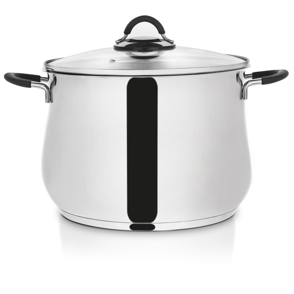 Kód produktu 113171Kvalitní nerezový hrnec DALIE objemu 10,6 l se skleněnou poklicí a silikonovými úchyty je vhodný ke každodennímu vaření na všech typech spotřebičů včetně indukce v troubě.