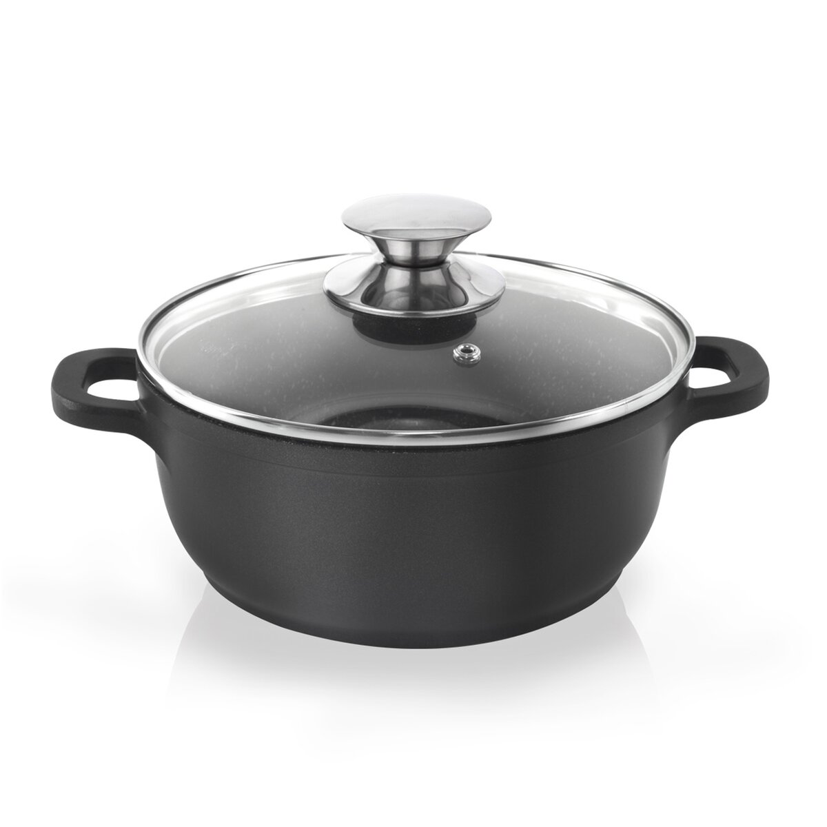 Masivní hrnec je opatřen skleněnou poklicí s nerezovým lemem a otvorem pro únik přebytečné páry, budete tak mít přehled nad stavem připravovaného pokrmu.