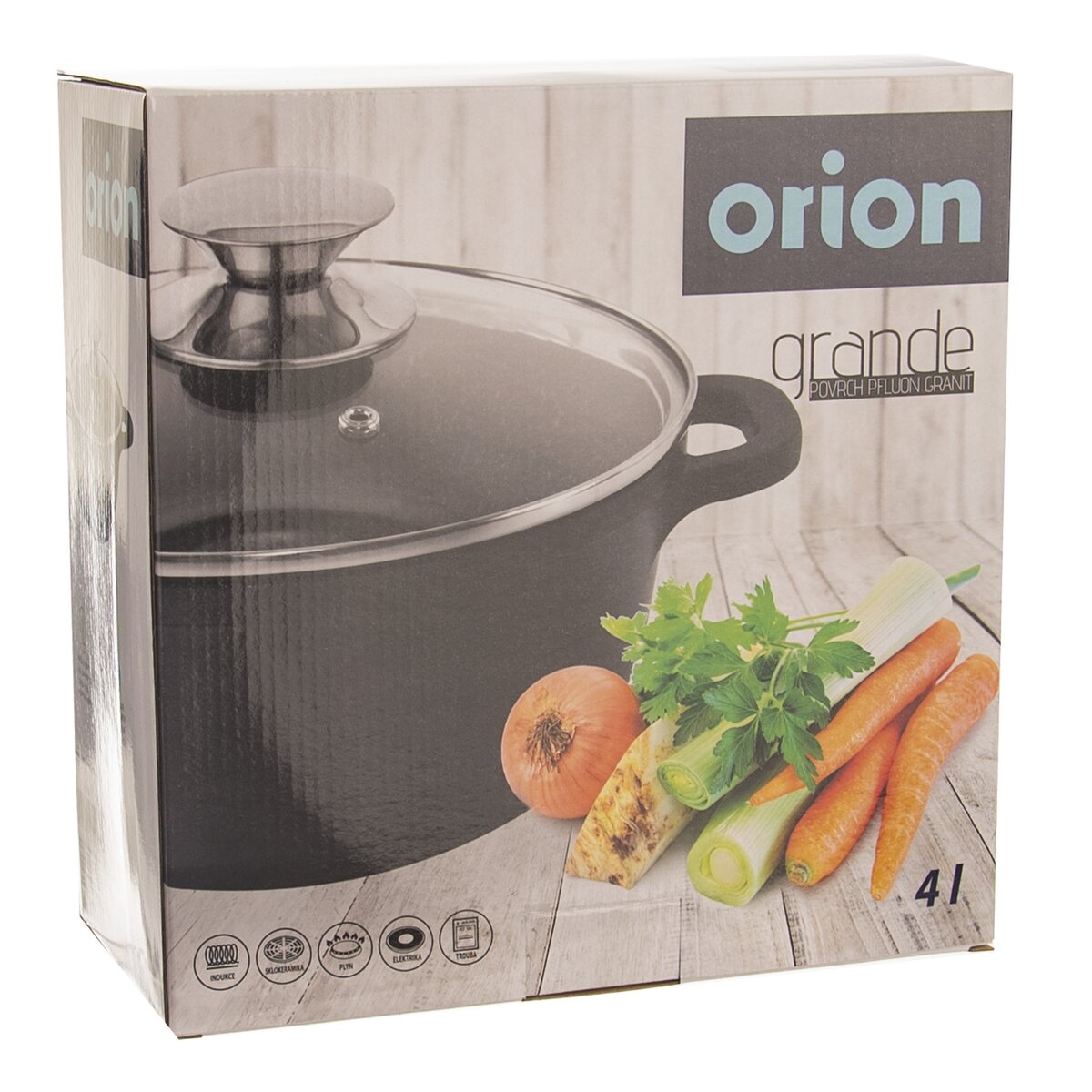 Kód produktu 113100Hrnec GRANDE s kvalitním nepřilnavým povrchem, objemem 4 l a se skleněnou poklicí je vhodný na všechny typy sporáků včetně indukce i do trouby. Možnost mytí v myčce.