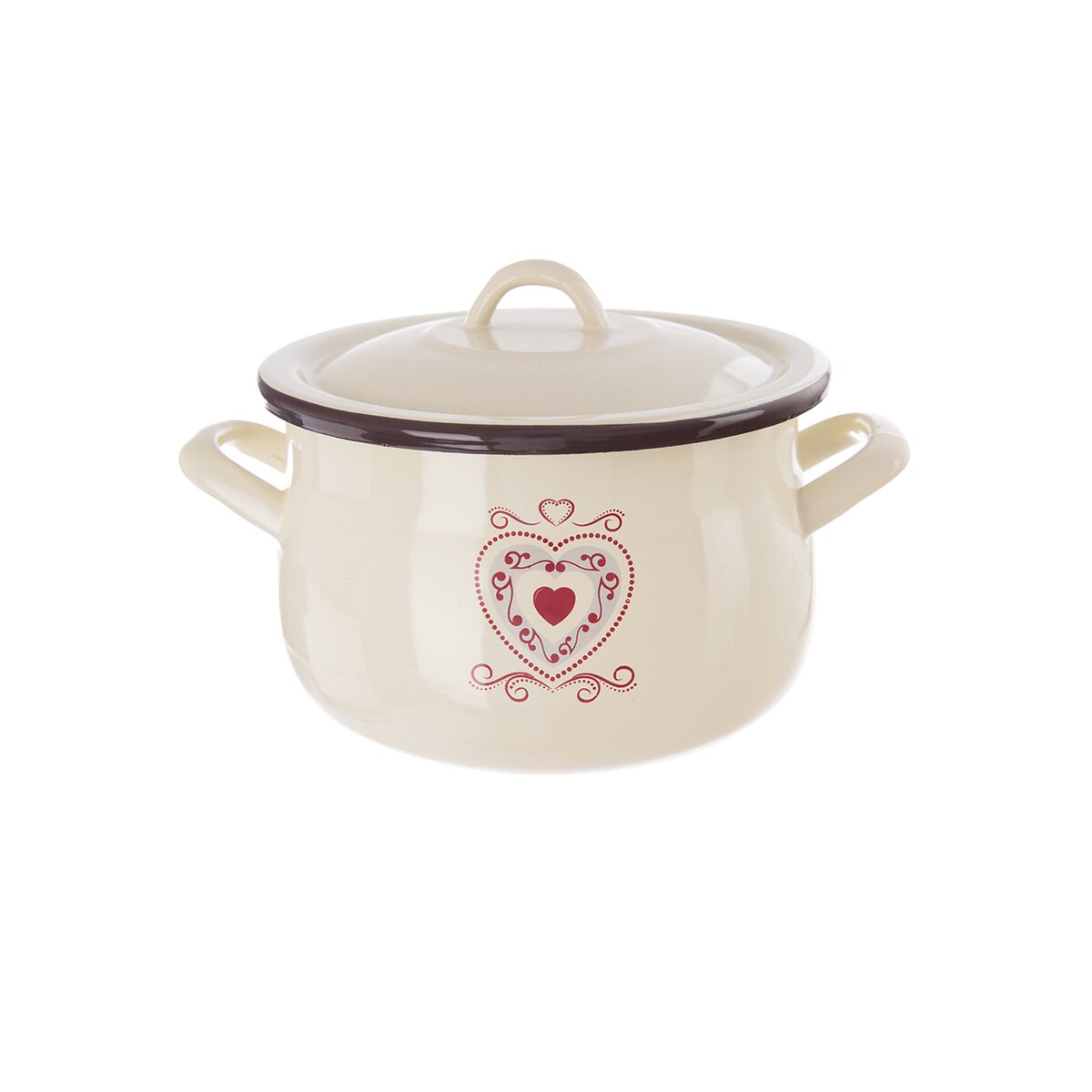 Kód produktu 113086Krásný krémový smaltovaný hrnec s lidovým dekorem o objemu 2,3 l s poklicí k vaření, dušení i pečení vašich oblíbených jídel, je vhodný na všechny typy sporáků i do trouby.