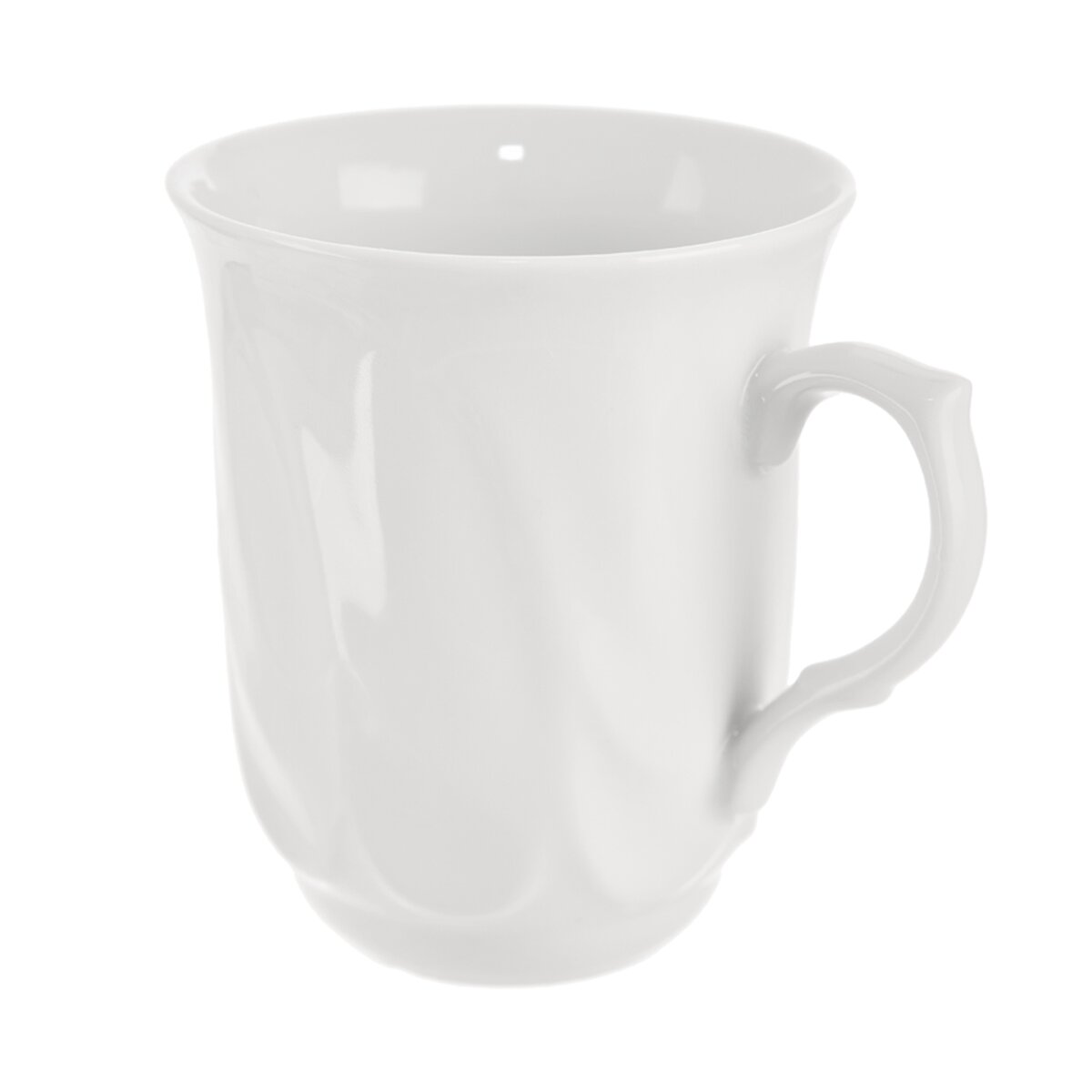 Kód produktu 129605Bílý porcelánový hrnek o objemu 0,3 l, s plastickým dekorem a uchem, je vhodný k přípravě a servírování kávy, čaje a dalších nápojů.