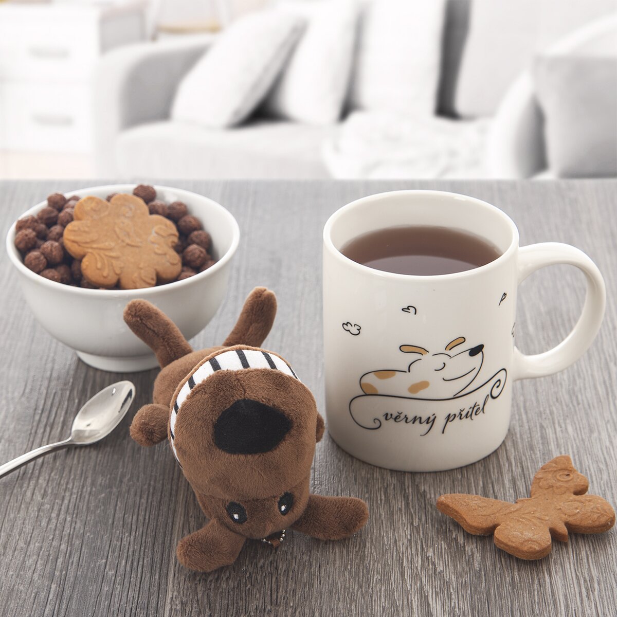 Více informacíBílý porcelánový hrneček zbobí hezký potisk pejska a nápis "věrný přítel". Z takového hrnečku se bude dobře pít, má objem 390 ml a šikovné ouško, za které se dobře drží. Navíc v něj je vložen hóóódně vysmátý pejsek, takže se hrneček může stát i roztomilým dárkem pro vaše blízké a přátele.