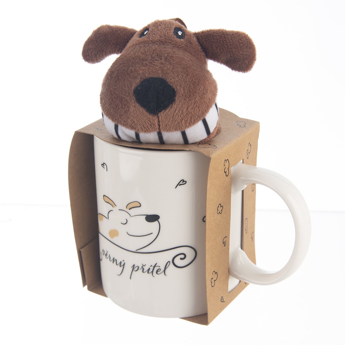 Kód produktu 129625Rovný porcelánový hrnek s nápisem "věrný přítel" a motivem pejska je doplněn roztomilým přívěskem, vhodným k zavěšení. Milý dárek pro radost.