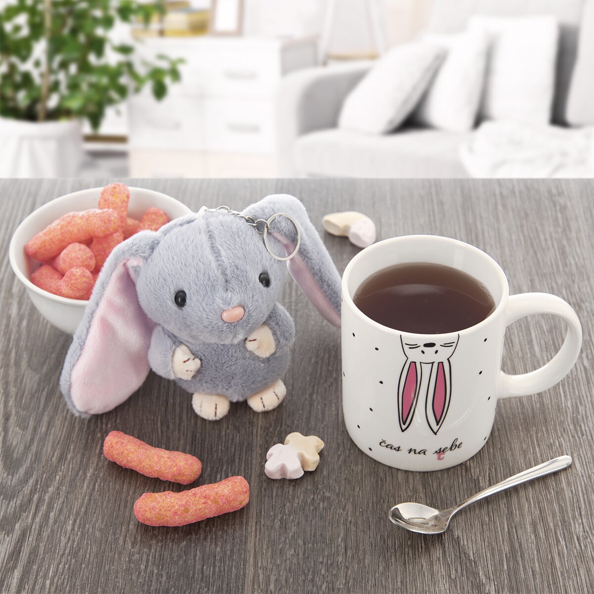 Kód produktu 129626Rovný porcelánový hrnek s nápisem "čas na sebe" a motivem ušatého zajíčka je doplněn roztomilým přívěskem, vhodným k zavěšení. Milý dárek pro radost.