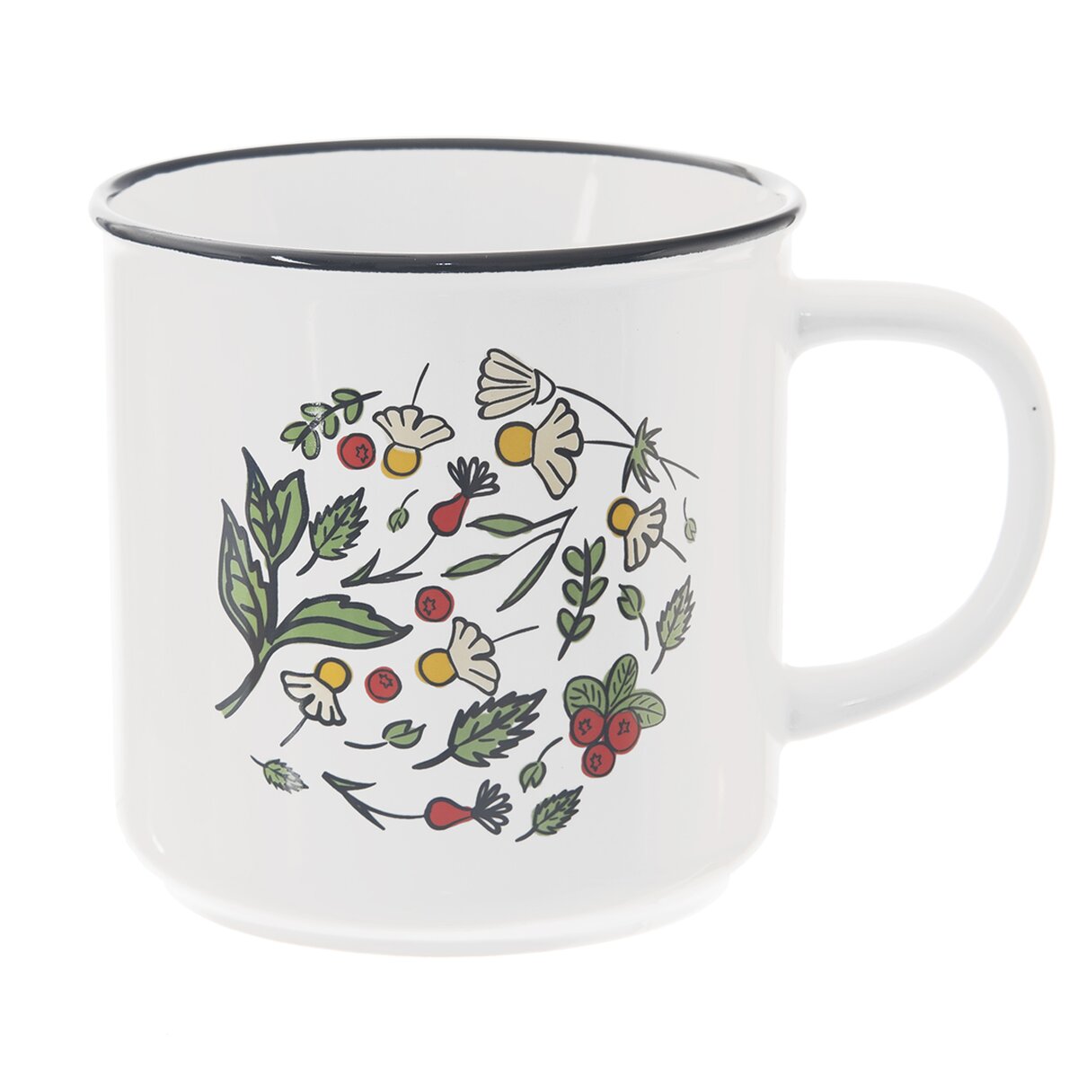 Kód produktu 129451Velký bílý keramický hrnek o objemu 0,7 l, s krásným potiskem na přední straně, je určen pro přípravu bylinných čajů, nálevů i odvarů.