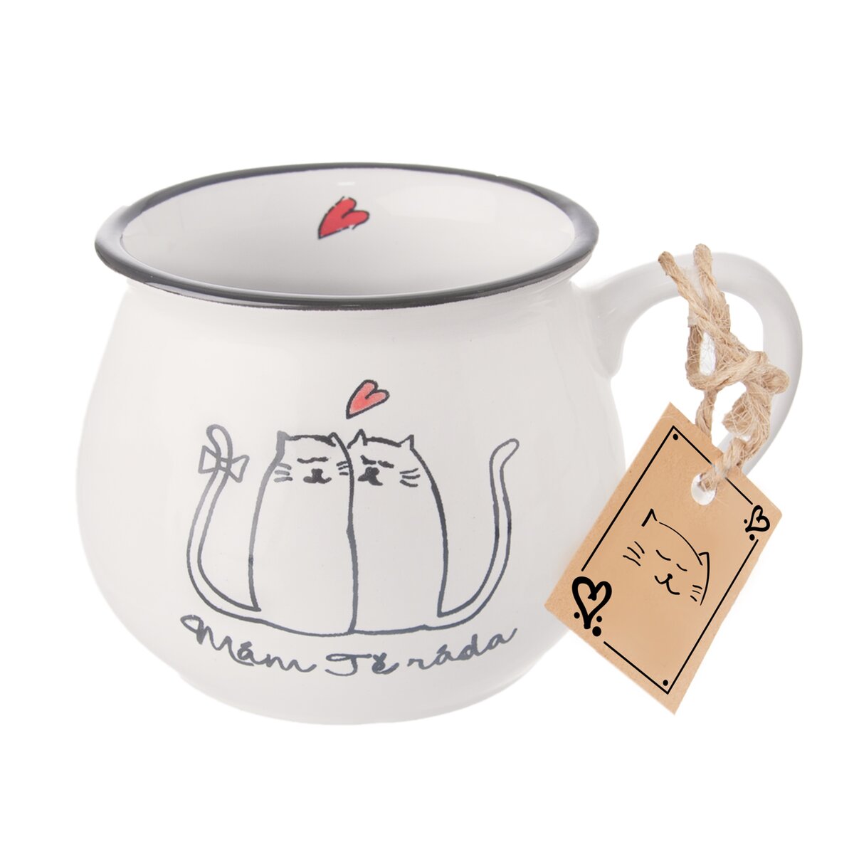 Kód produktu 128816Keramický hrnek o objemu 0,32 l s dekorem dvou koček a nápisem MÁM TĚ RÁD/A.