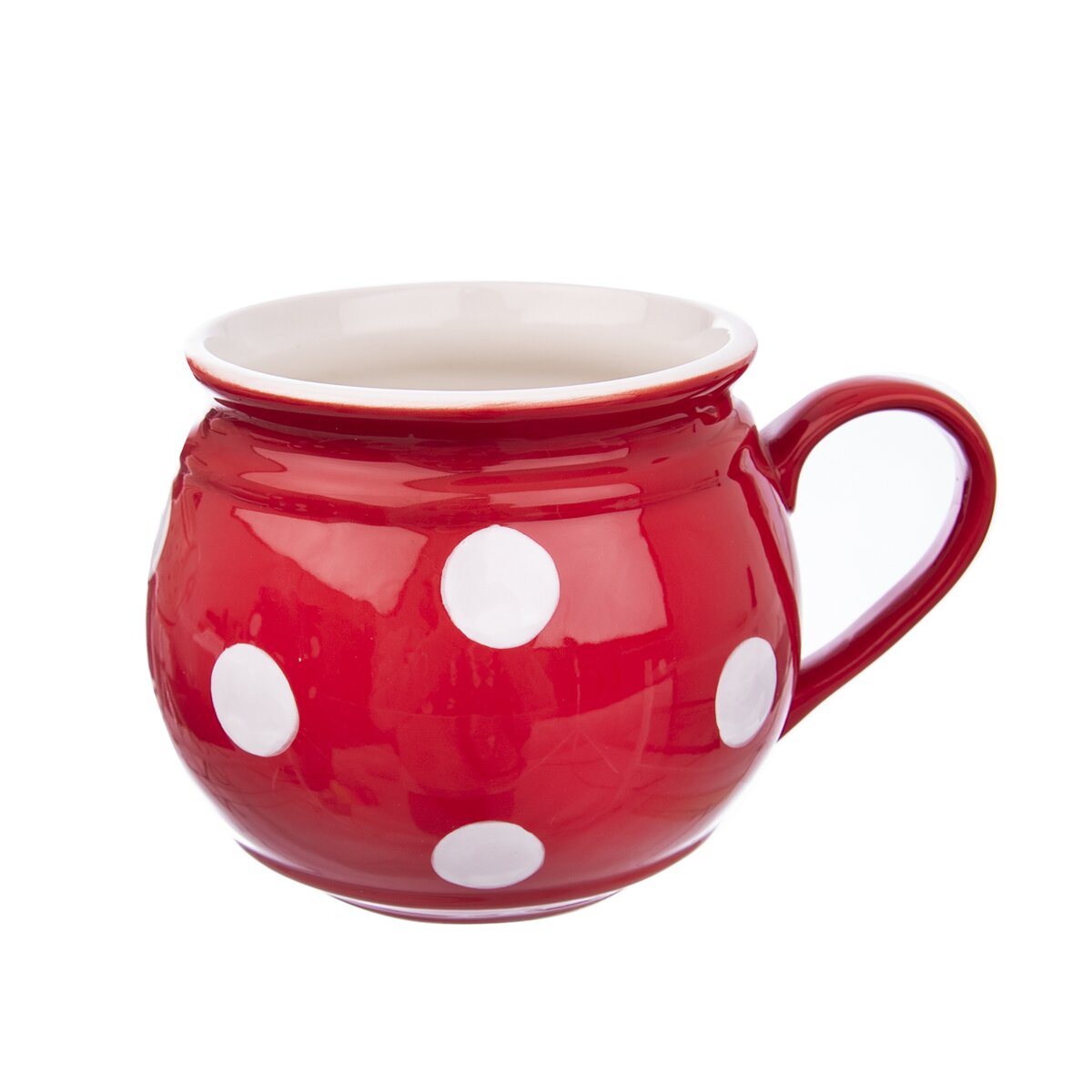 Kód produktu 125652Červený keramický hrnek KRAJÁČ o objemu 0,75 l s bílými puntíky.