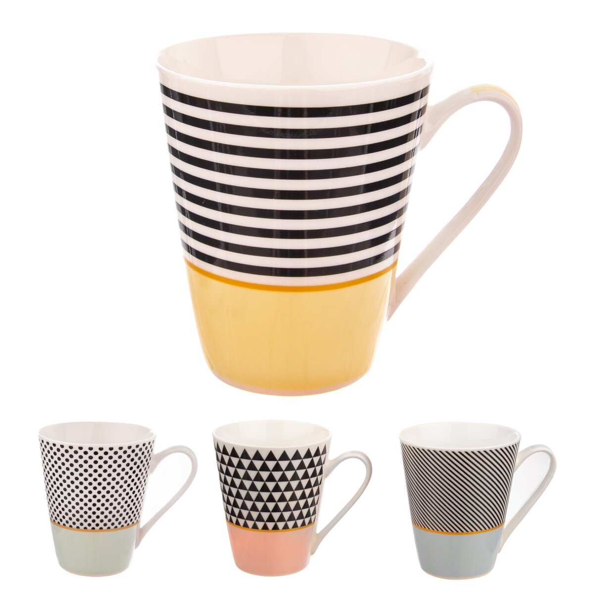 Hrnek s uchem s dekorem. Materiál: porcelán. Vhodný do myčky i MVT. Rozměry: objem 0,36 l, pr. 8,5 cm, v. 10 cm.