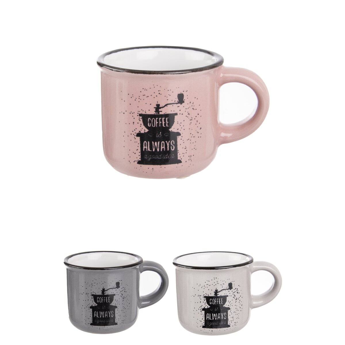 Espresso, lungo nebo doppio. Ať už upřednostňujete jakýkoliv typ kávy, vychutnejte si ji v tomto stylovém keramickém hrnku o objemu 90 ml. Zdobí jej motiv kávového mlýnku a černá linka při okraji hrnku.