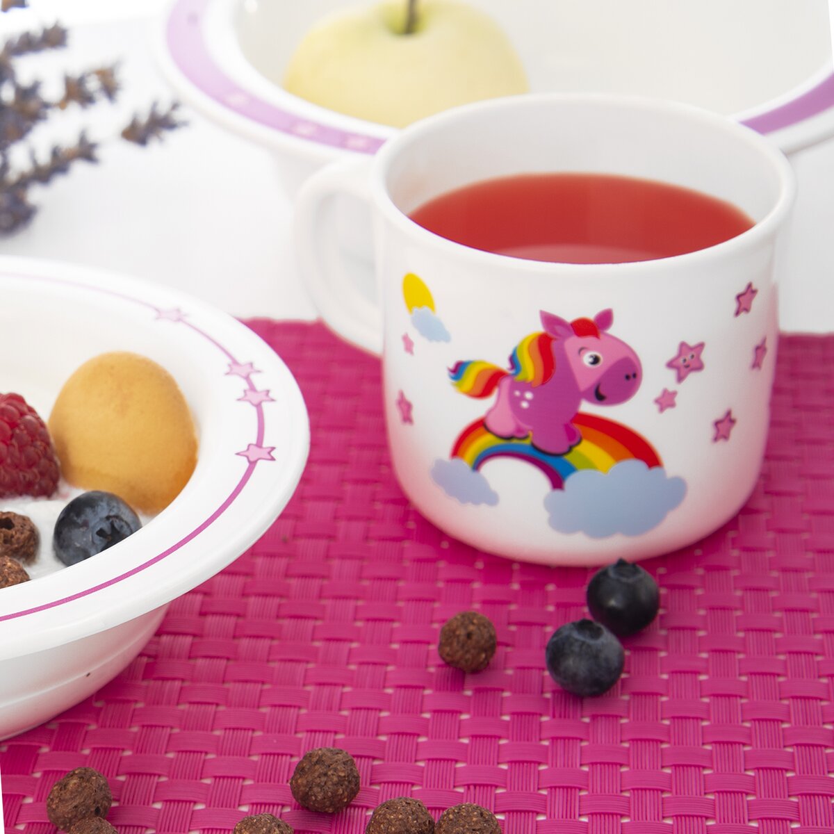 Hrníček s pohádkovým koníkem, který vykouzlí úsměv na tváři každého dítěte. Má objem 250 ml, vaše malé ratolesti z něho tak mohou pít džus, čaj, mléko i kakao.