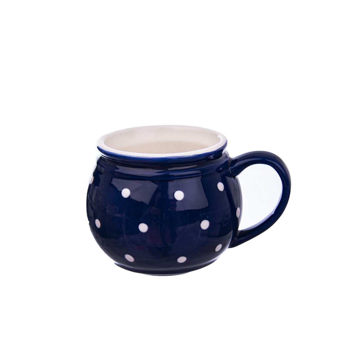 Kód produktu 125649Modrý keramický hrnek KRAJÁČ o objemu 0,2 l s bílými puntíky.