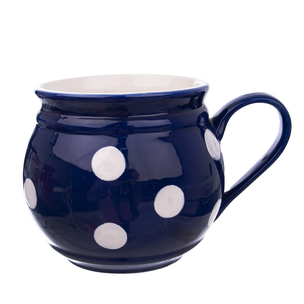 Kód produktu 125655Modrý keramický hrnek KRAJÁČ o objemu 1 l s bílými puntíky.