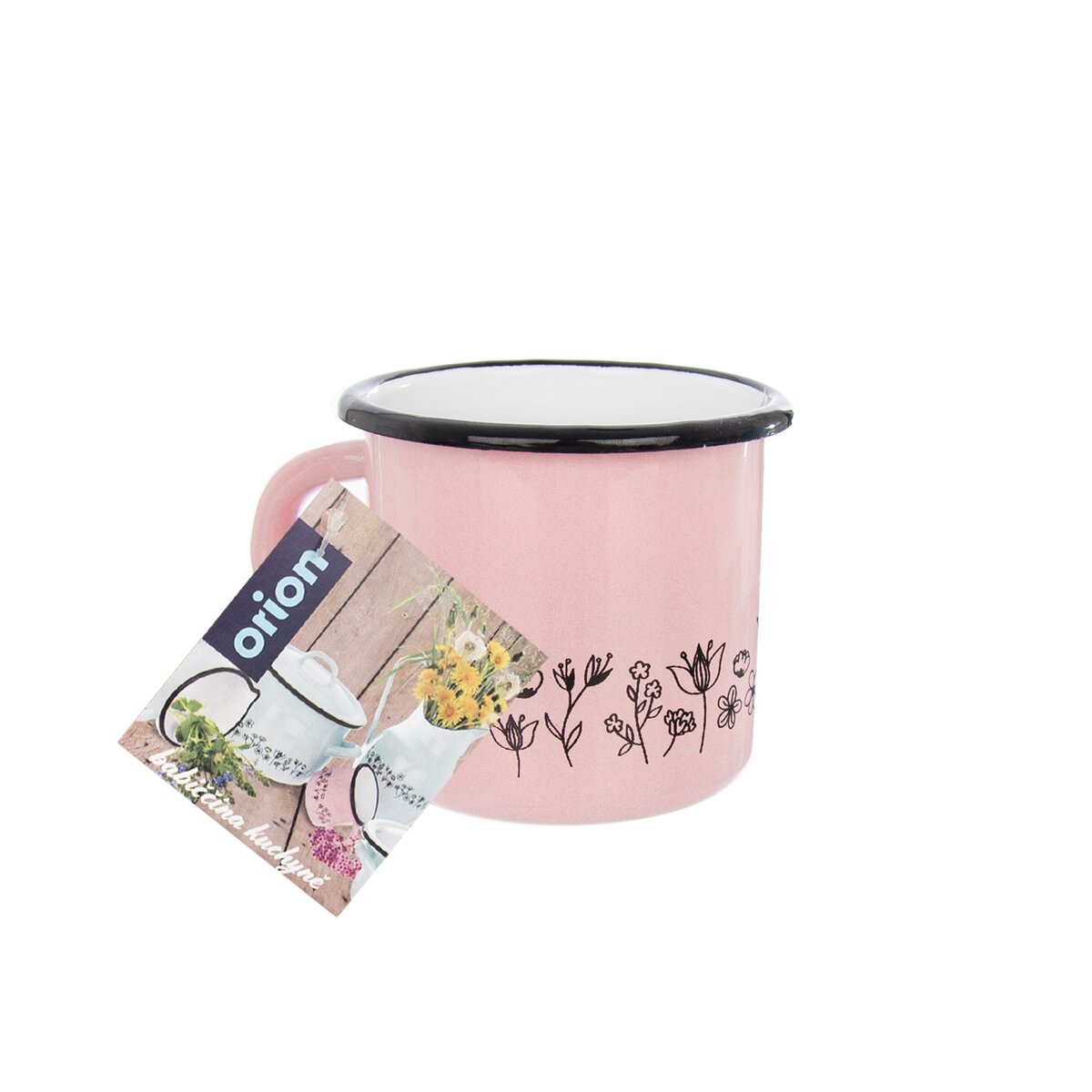 Kód produktu 113147Rovný růžový smaltovaný hrnek o objemu 0,4 l se vzorem LOUKA.