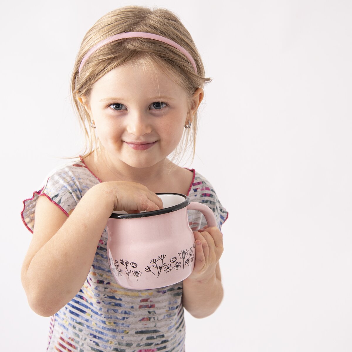 Zdobí ho pastelově růžová barva a jemný dekor květin, které z něho dělají krásný kousek nejen chatu či chalupu, ale i do moderní domácnosti. Má průměr 10 cm a objem 800 ml.