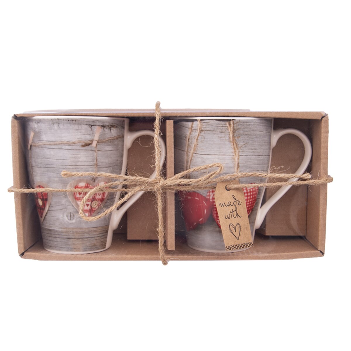 Kód produktu 127235Set dvou kusů porcelánových hrnků o objemu 0,38 l s dekorem srdce ve vintage stylu.