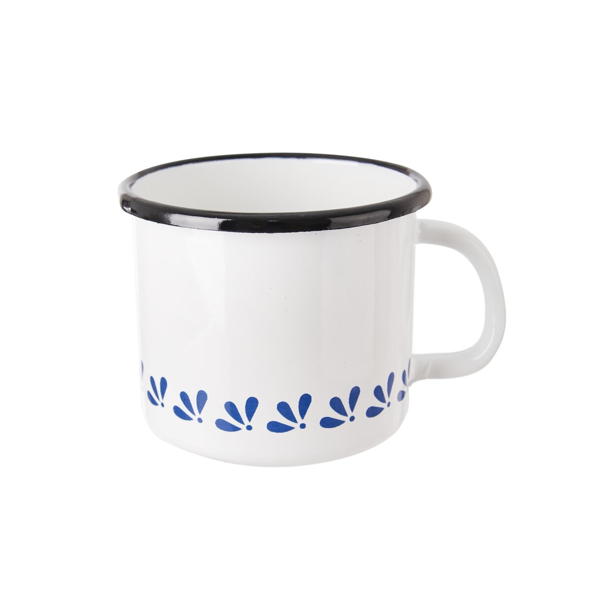 Kód produktu 113511Bílý smaltovaný hrnek o objemu 0,8 l s dekorem MODROBÍLÁ.