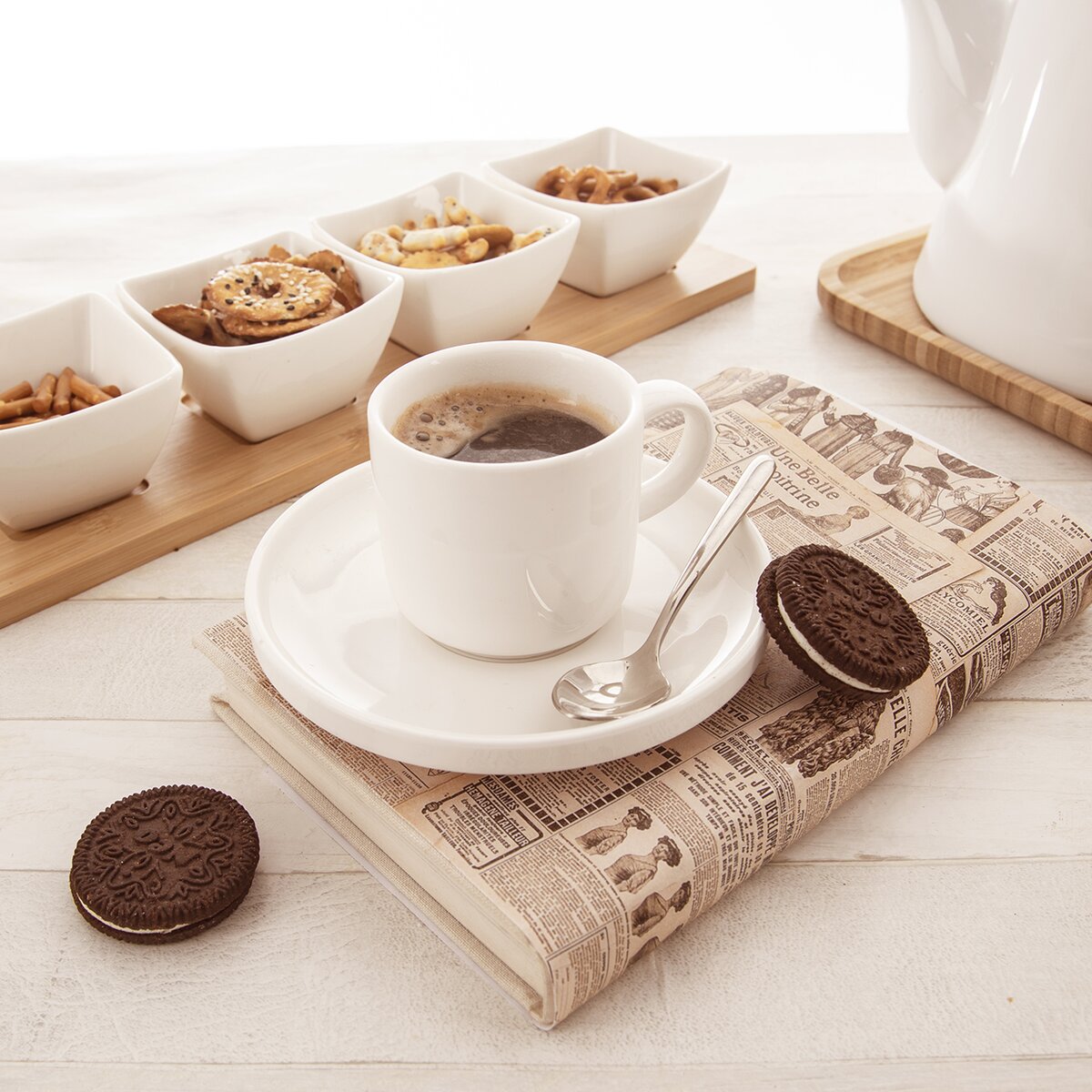 Porcelánový hrnek s uchem Vada z elegantní kolekce MONA je ideální pro podávání espressa, kávy nebo čaje.