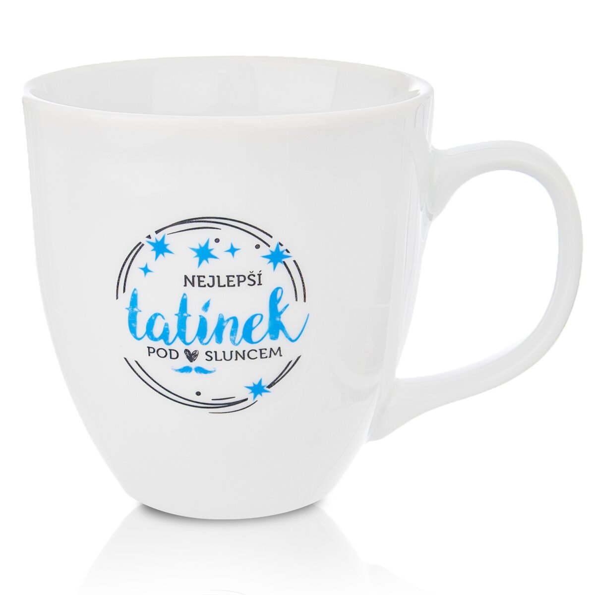 Kód produktu 128850Bílý porcelánový hrnek o objemu 470 ml s nápisem NEJLEPŠÍ TATÍNEK POD SLUNCEM.