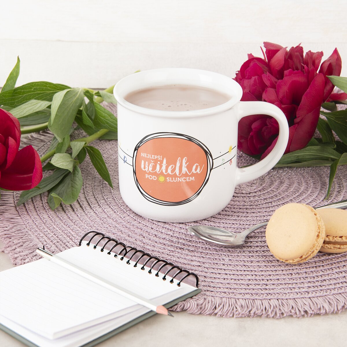 Hledáte-li dárek, kterým potěšíte svou oblíbenou učitelku, dejte jí tento porcelánový hrnek. Nápisem „Nejlepší učitelka pod sluncem“ dáte najevo, jak moc si její práce vážíte. Nejen v době předávání vysvědčení, ale i po maturitě nebo na konci školního roku.