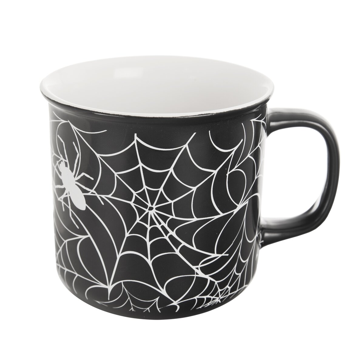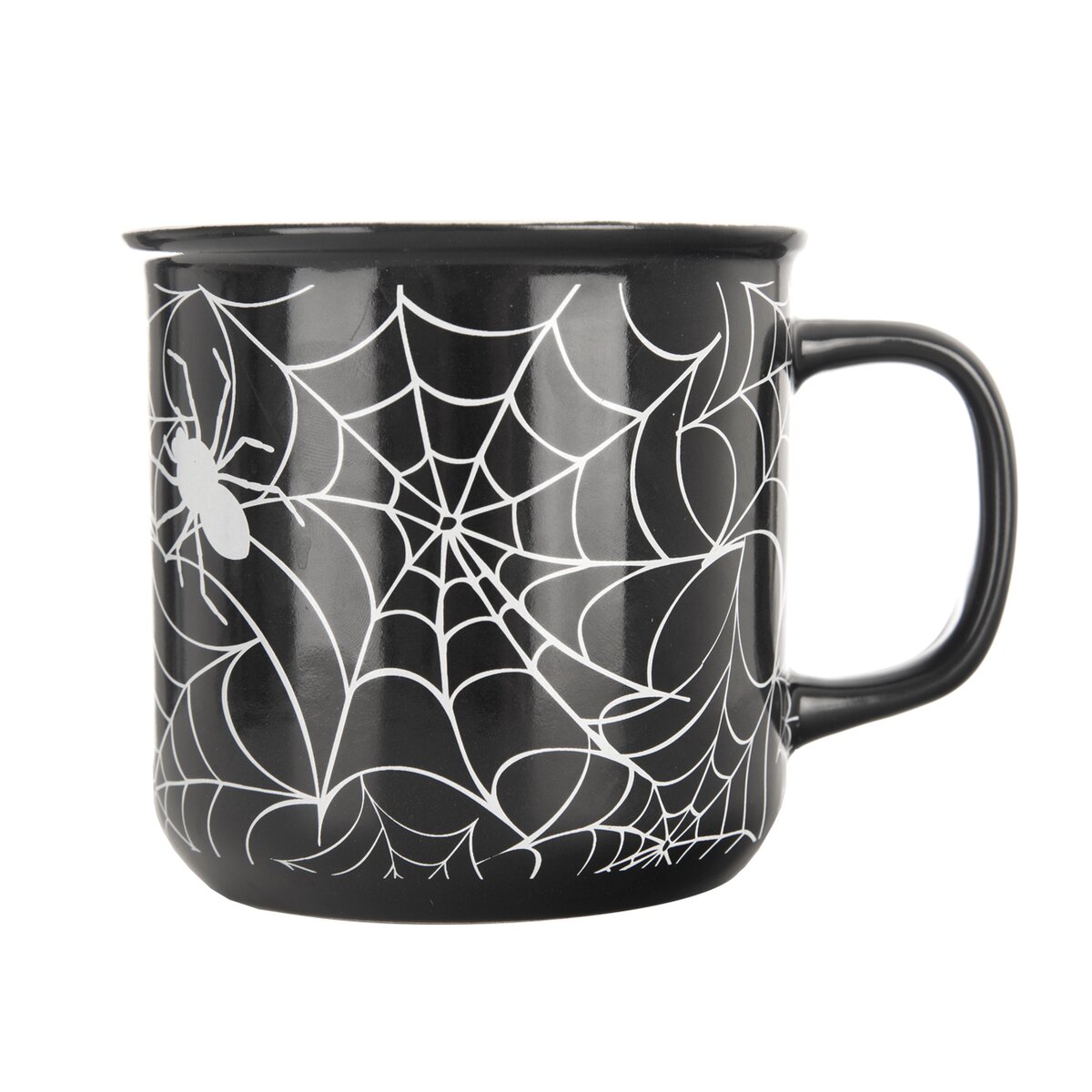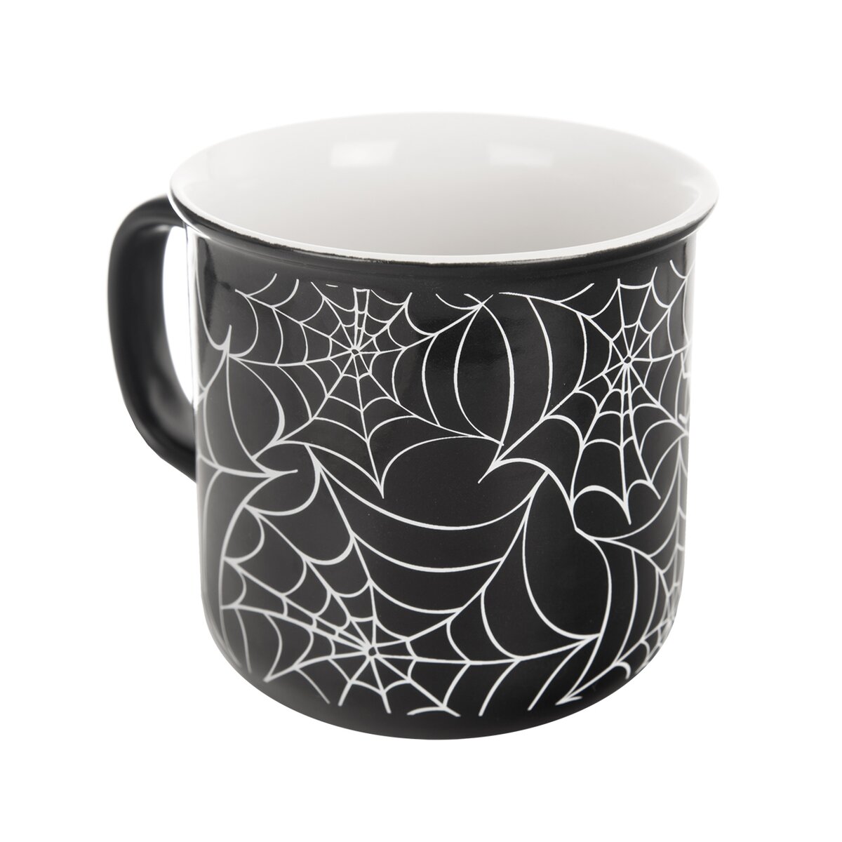 Kód produktu 129473Keramický hrnek o objemu 0,46 l, s tmavou glazurou a motivem pavučin, je určen k podávání čaje, kakaa a jiných teplých či studených nápojů.