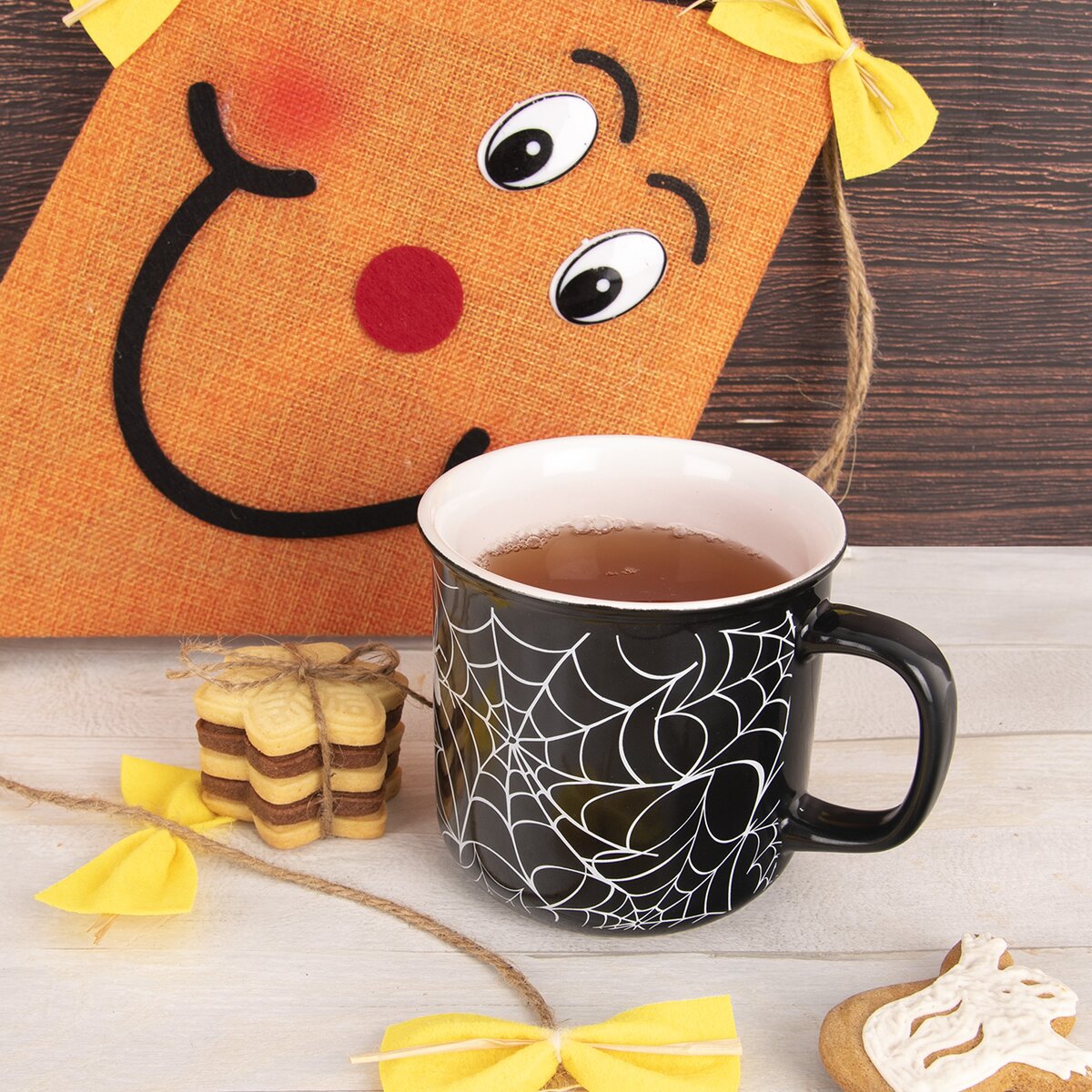 Více informacíVelký hrnek s prostorným uchem, za které se dobře drží, je zajímavý motivem pavučin na tmavém podkladu. Silné stěny z keramiky jej předurčují jak k přípravě a podávání horkého čaje, lahodného kakaa s marshmallows nebo třeba na pořádného halloweenského punče, co zahřeje v sychravých podzimních dnech. Dekor vznikl v dílně našich Orion designérů.