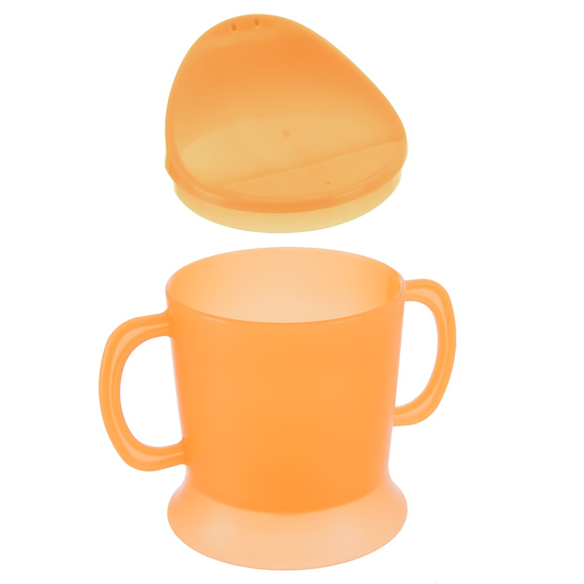 Kód produktu 112446Oranžový hrneček o objemu 230 ml s pítkem a dvěma držadly po stranách.
