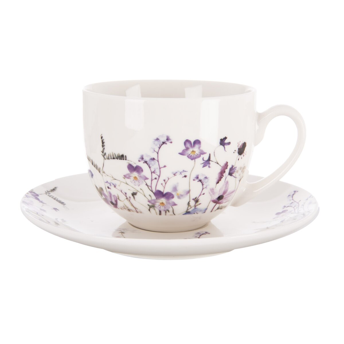 Kód produktu 132213Porcelánový hrnek LOUKA s podšálkem má objem 0,28 l a oba jsou zdobeny něžným dekorem lučních květin.
