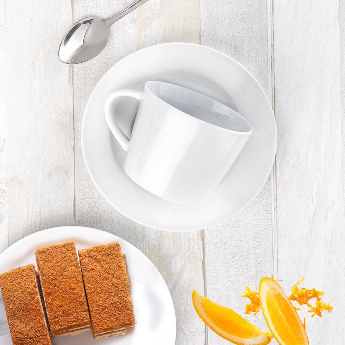 Jestliže dáváte přednost klasickému bílému nádobí před divokými barvami, je tento bílý porcelánový hrnek o objemu 180 ml jako dělaný pro Vás. Navíc k němu patří i ladící podšálek.