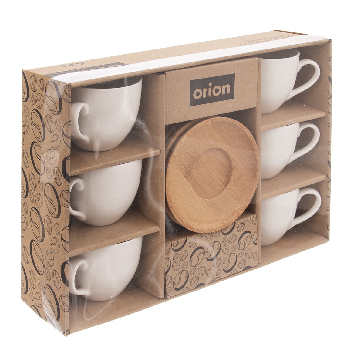 Tvoří jej šest bílých porcelánových hrnečků, do kterých se díky objemu 125 ml vejde vaše oblíbená káva nebo menší dávka čaje a šest podšálků z bambusového dřeva.