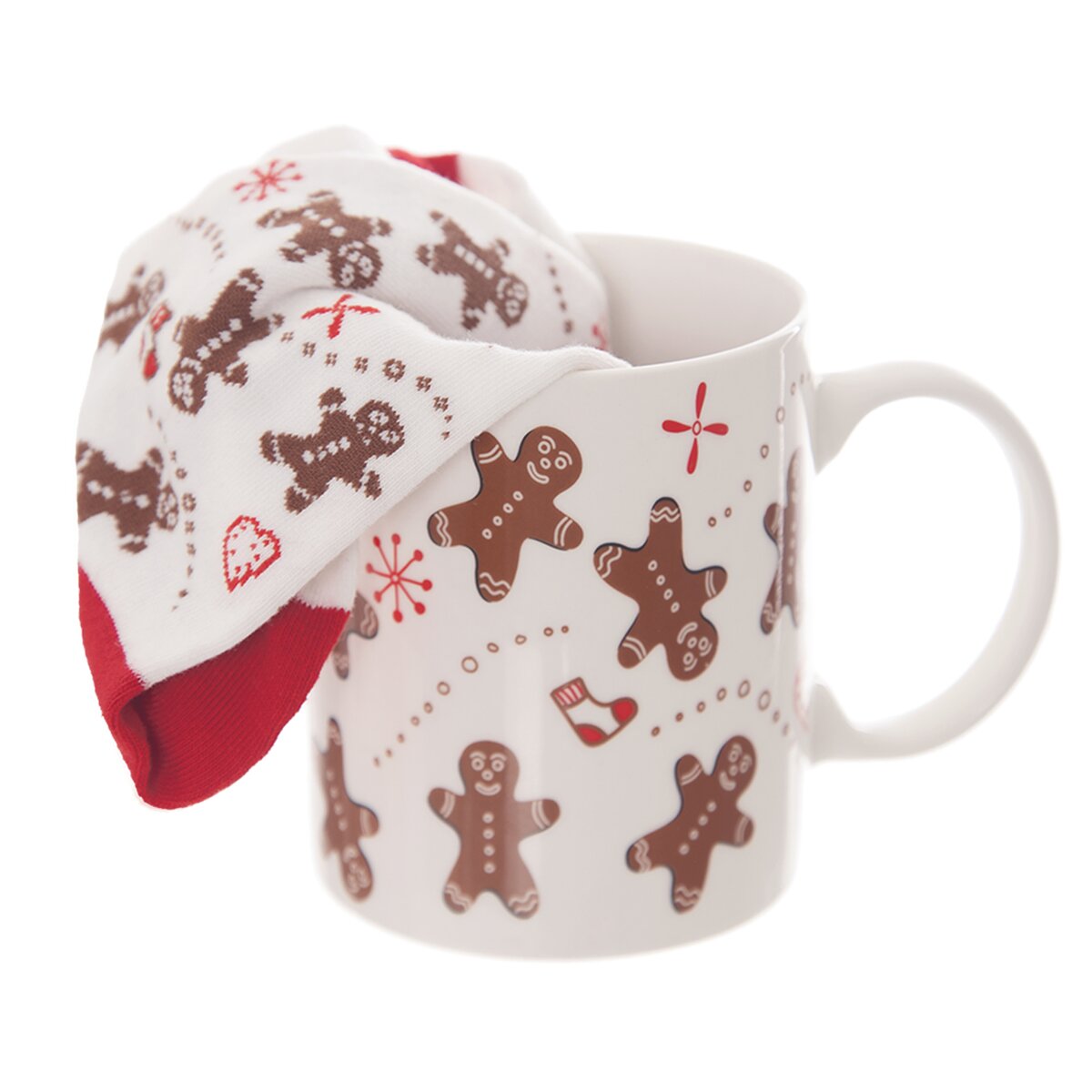 Kód produktu 129469Keramický hrnek o objemu 0,35 l v sadě s veselými ponožkami velikosti 42-45. Zdobí je motiv roztomilých perníčků.