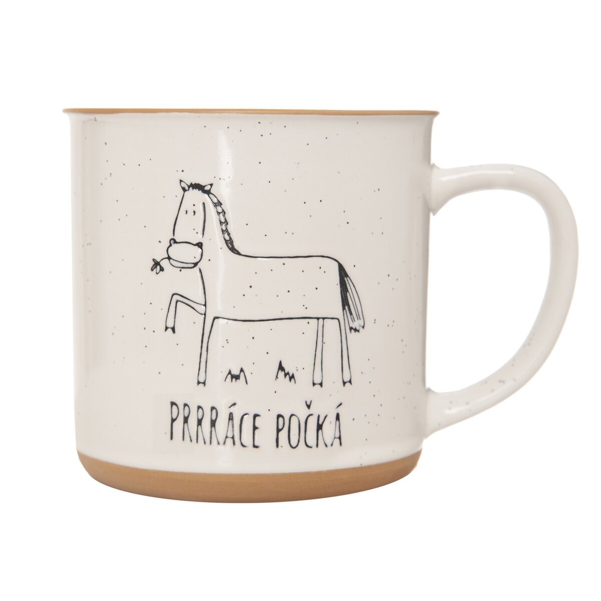 Kód produktu 129479Keramický hrnek o objemu 0,53 l zdobí kresba koně a originální nápis s vtipem "PRRRáce počká".