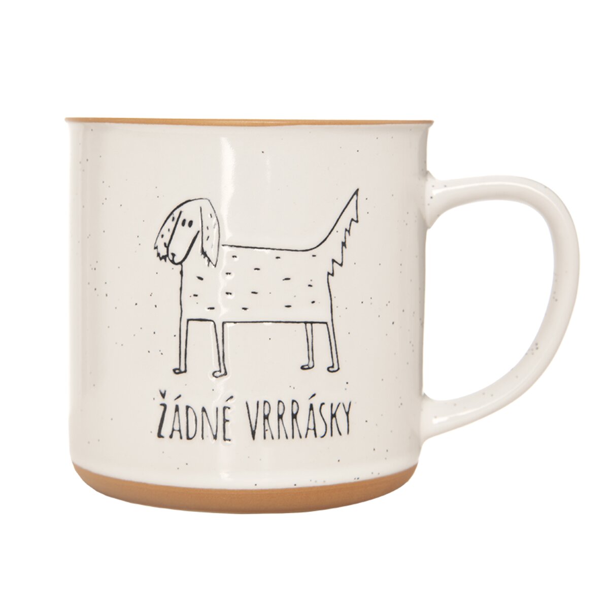 Kód produktu 129481Keramický hrnek o objemu 0,53 l zdobí kresba psa a originální nápis s vtipem "Žádné VRRRásky".