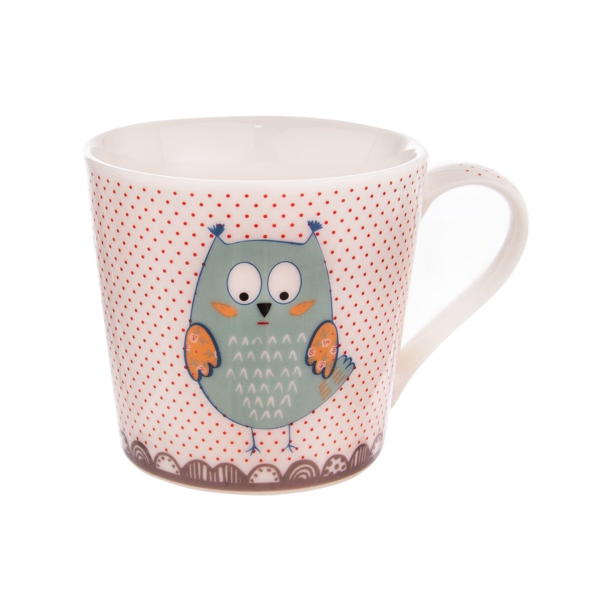 Kód produktu 127238Hrnek s uchem s dekorem. Materiál: porcelán. Vhodný do myčky i MVT. Rozměry: objem 0,44 l, pr. 10 cm, v. 9 cm.