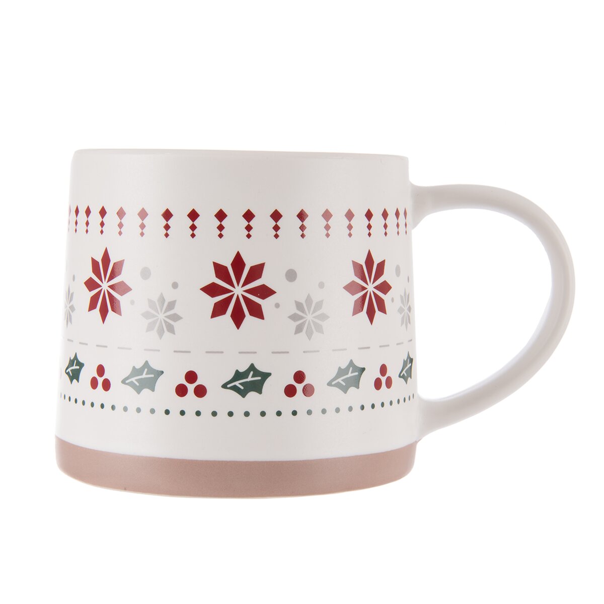 Tento hrnek zdobí motiv hvězd, drobných lístků a bobulí a je ideální k servírování čaje, bylinkových nálevů, velké kávy s mlékem, punče, svařáku a dalších nápojů typických pro zimní období.