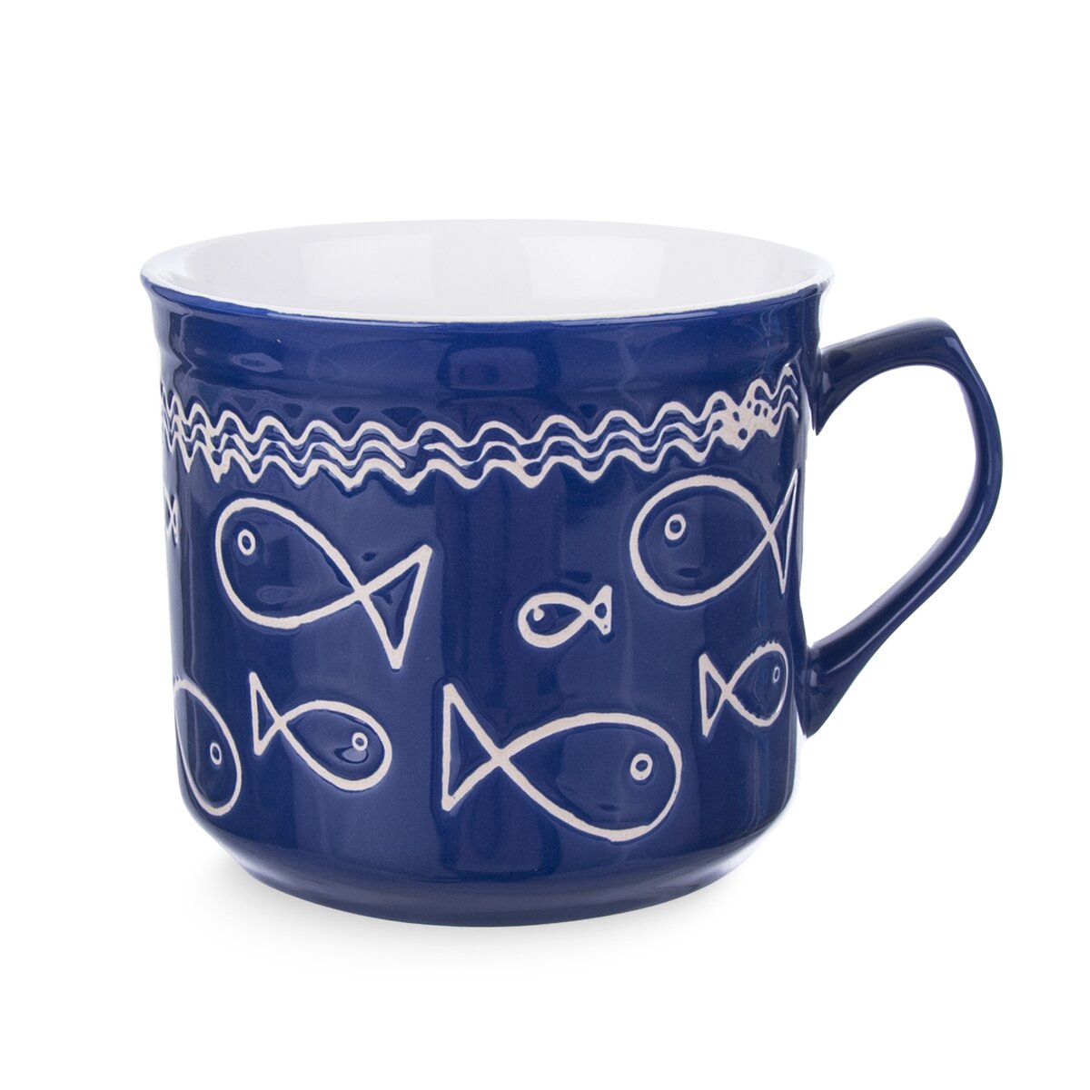Kód produktu 125495Modrý keramický hrnek vařák o objemu 500 ml s dekorem RYBY.